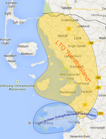 Die Mitglieder der LTO „St.Peter-Ording / Eiderstedt mit Friedrichstadt“ sind nur noch die Gemeinden. In der „Tourismuszentrale Eiderstedt“ waren auch die einzelnen Tourismusvereine Mitglieder. Das bedeutet, dass die Orte Witzwort, Uelvesbüll und Oldenswort nicht zur neuen LTO gehören werden. Diese Gemeinden sind Mitglied in der Husumer Bucht. Husum, die Umlandgemeinden mit Nordstrand, Pellworm, das Amt „Mittleres Nordfriesland“ und das Amt „Südtondern“ planen (und das schon seit fast 5 Jahren) ebenfalls eine LTO. Diese Entwicklung ist aber erst in den Anfängen. (Siehe Grafik, Quelle: GoogleMaps)